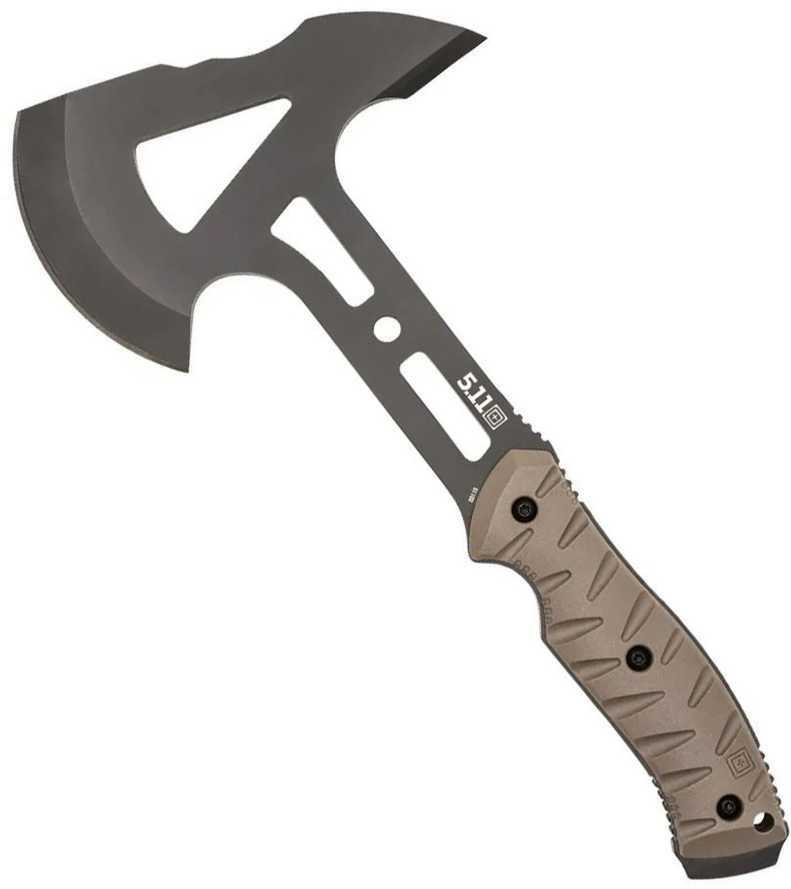 The 5.11 Tactical CFA Peacemaker Tactical Tomahawk 51102 is designed by Special Forces veteran and tactical tomahawk pioneer Justin Gingrich exclusively for 5.11. The Peacemaker features a heat-treated steel blade and pick head with full-tang steel construction that’s perfect for heavy field use. Best of all, the Peacemaker swings with the accuracy and feel of a hammer. Its skeletonized frame reduces the weight (1 lb., 12.2 oz), which helps you make short work of those bigger tasks. A textured handle, finished with a tactical pummel tip, provides a sure grip in wet and freezing conditions. Includes a protective sheath and four position belt/MOLLE clip with a 3” capacity. The CFA Peacemaker is the perfect tool for your go bag, camping kit, or vehicle. Imported. GSA/TAA compliant.