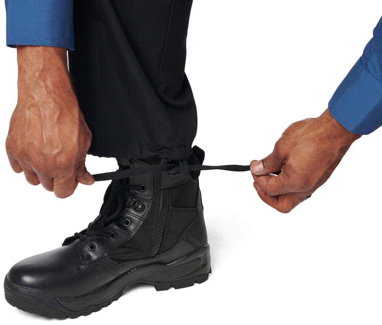 The 5.11 Tactical Men’s NJDOC PDU Class B RipStop Cargo Uniform Pant 74062US is built tough for durability and lasting comfort. Teflon coated to repel stains, liquid, and soil, the PDU Class B Twill Cargo Pant features a professional flat front design with permanent military creases and an internal gripper panel to keep your shirt securely in place, ensuring a professional profile in any setting. A patented cargo pocket design allows after-purchase striping, and each cargo pocket hides a secure covert pocket directly behind it for additional storage. The classic 5.11 self-adjusting tunnel waistband provides a secure, comfortable fit, genuine YKK zippers and Prym snaps ensure quick and reliable action, and an integrated flashlight pocket offers added utility.