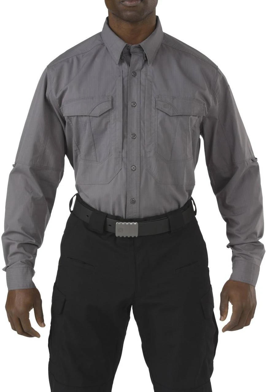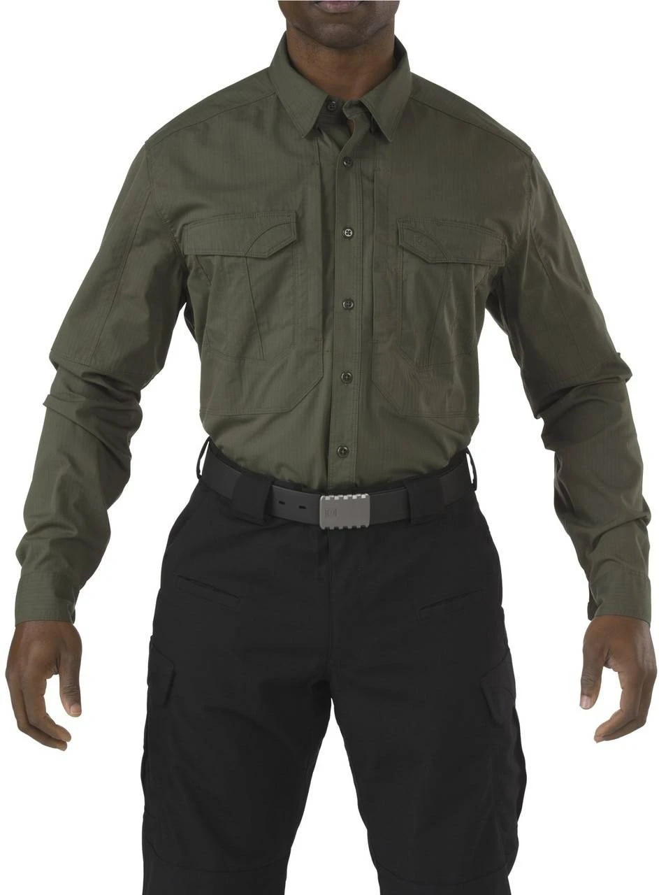 The 5.11 Tactical Stryke Long Sleeve Shirt is constructed from the same 4.84 oz. Flex-Tac mechanical stretch fabric as the popular 5.11 Stryke Pant. This shirt offers unprecedented durability, comfort, and mobility while maintaining a clean and professional appearance. The Stryke Shirt is Teflon treated to repel moisture, stains, and precipitation and the pen pockets on the left sleeve keep your writing instruments within easy reach at all times. Hidden document pockets on the chest offer covert storage space. Bartacks have been added at all major stress points for enhanced durability.