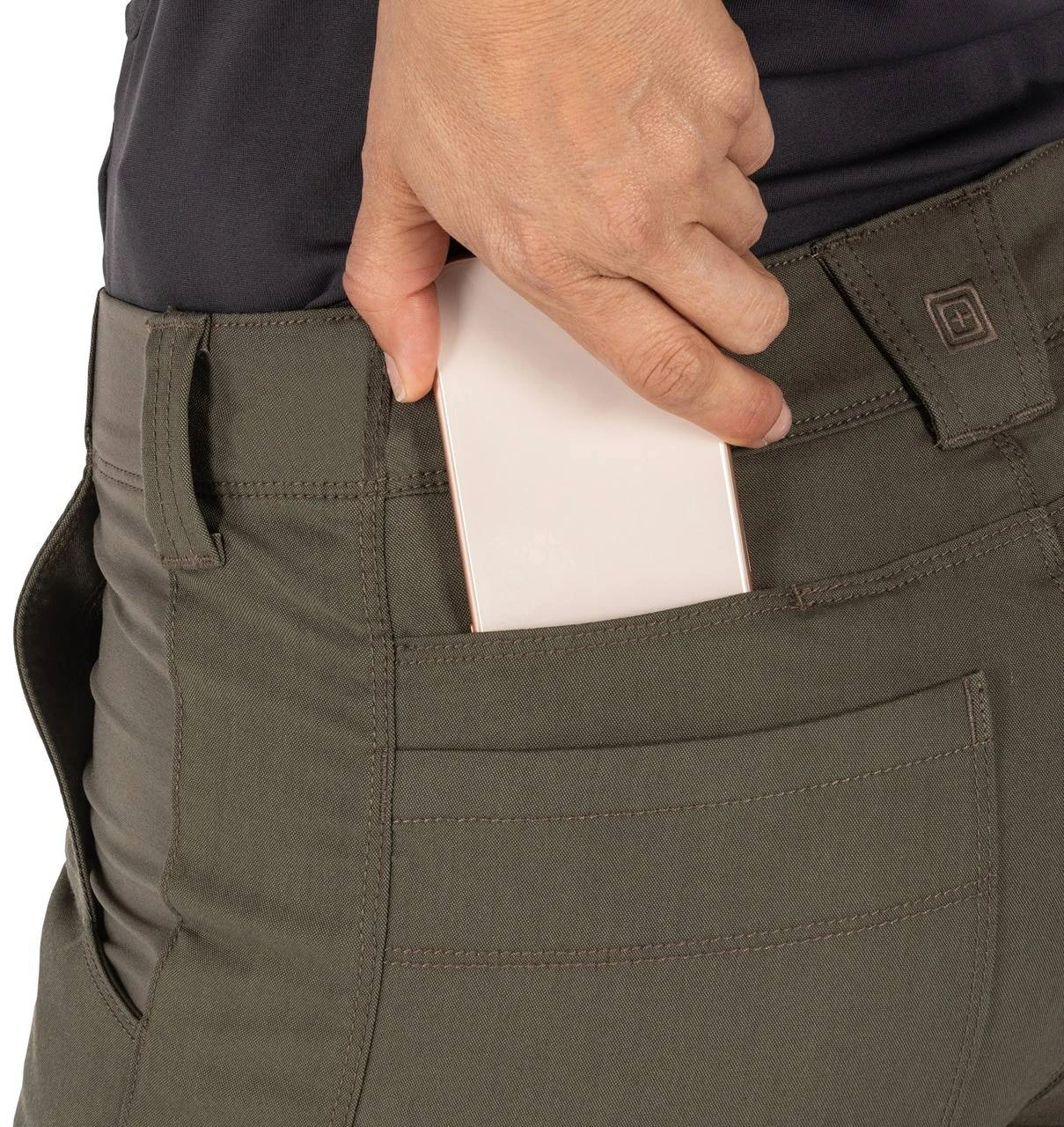 The 5.11 Tactical Women’s Icon Pant was built with input from female professionals. Constructed from durable 80/20 Flex-Tac mechanical stretch ripstop fabric, these women’s tactical pants are reinforced in strategic locations throughout and feature a gusseted design. Select pockets are strengthened with Nylon 6 for an extended life. Other features of these pants include a pair of magazine pockets, internally divided cargo pockets, a comfort waistband, Teflon finish for stain and soil resistance, and a total of 12 pockets.