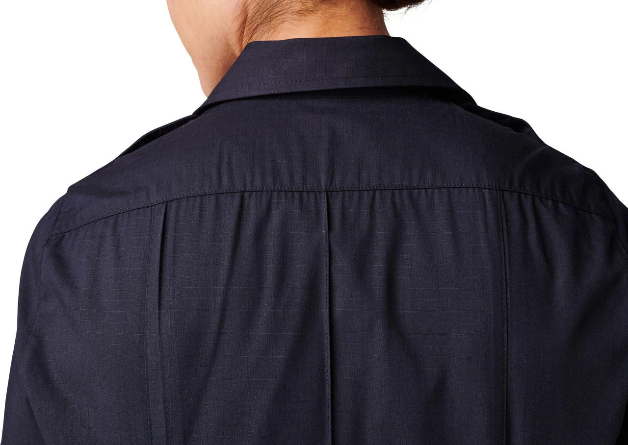The 5.11 Tactical Women’s NYPD Stryke RipStop Short Sleeve Uniform Shirt 61335 meets the NYPD Spec for uniform shirts and is made with 5.11’s Patented Flex-Tac mechanical stretch ripstop fabric for performance, durability and easy movement. Sewn-in military creases, epaulettes and scalloped chest pockets with pen guides. Button-front closure with an NYPD Approved label sewn into the front placket. Poly/cotton Flex-Tac Ripstop is finished with Teflon for stain and soil-resistance.
