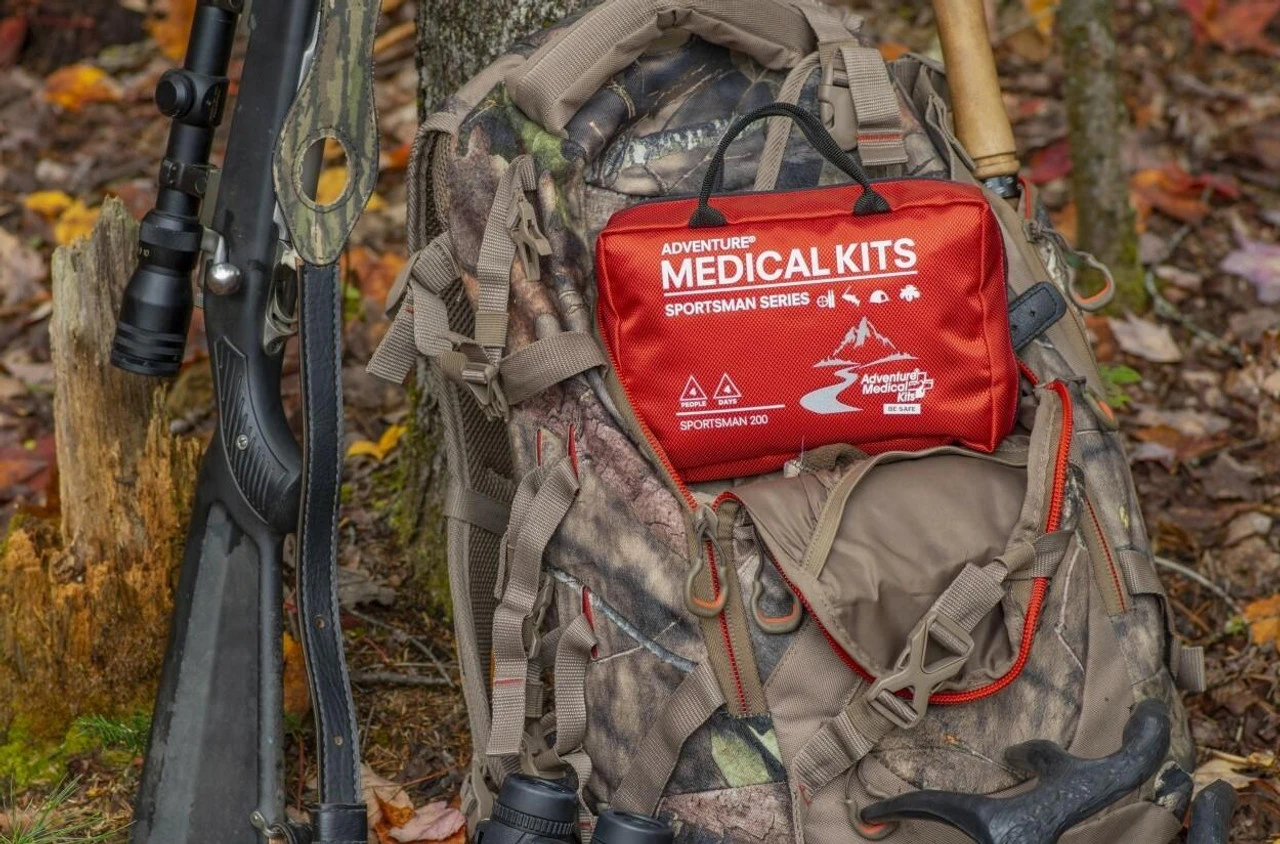 The AMK Medical Sportman 200 Kit contains enough first aid supplies to last a group of four for up to four days. The reflective sign makes it easy to find in the dark while the external kit map and Easy Care Organization System, and clearly labeled pockets, let you quickly find what you need in an emergency.