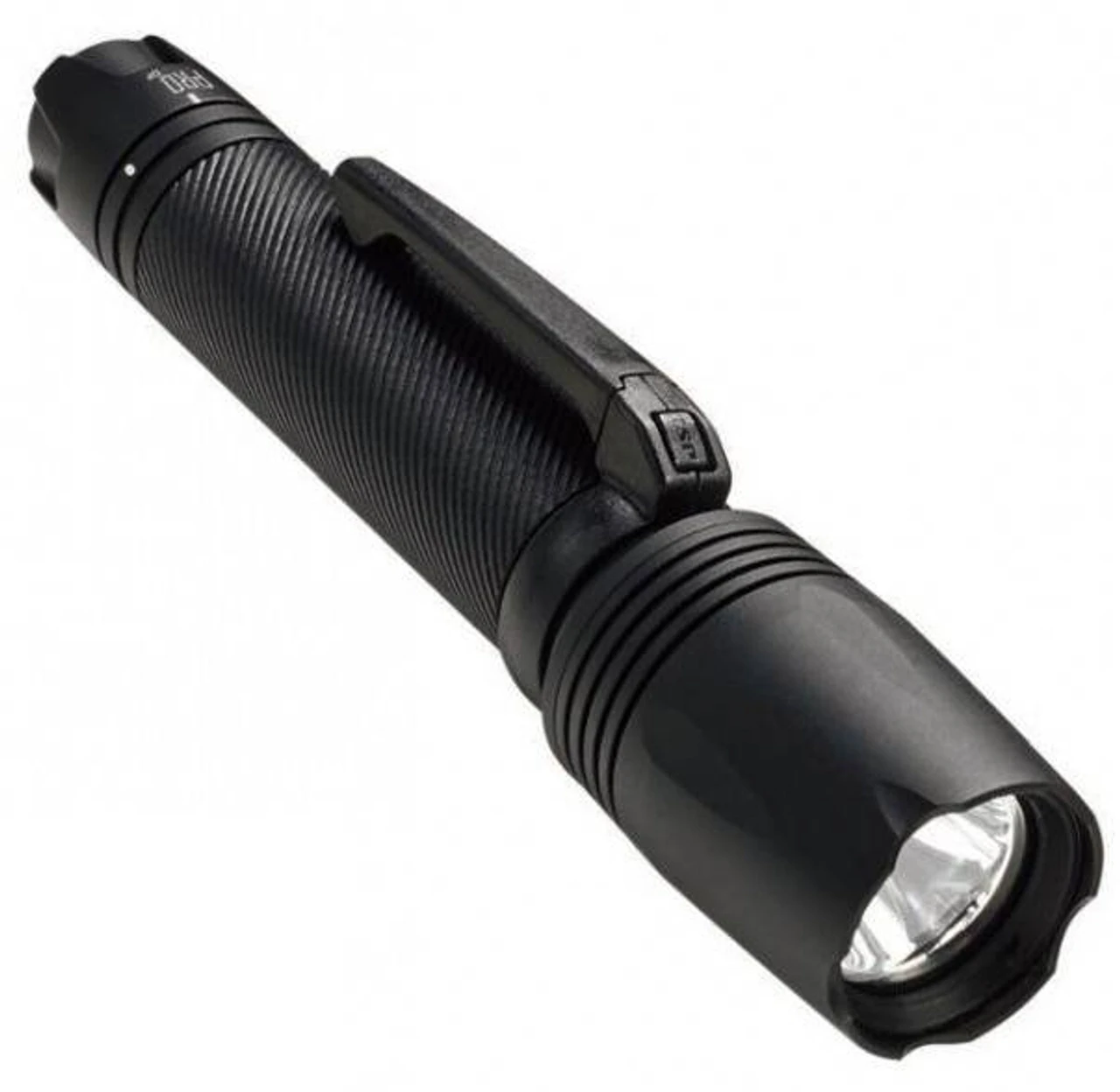 The Pro DF (Dual Fuel) flashlight boasts a primary setting brightness of 500 lumens when used with the included 18650 rechargeable battery or 610 lumens with optional CR123A primary cells. The secondary light level is user programmable at 15, 60 or 150 lumens, or strobe. In keeping with ASP’s emphasis on intuitive design and simplicity in their law enforcement tools and training, activation of the Pro light is via a single pressure switch on the tail cap press once to activate the primary, max setting, twice to activate the user programmed secondary mode.