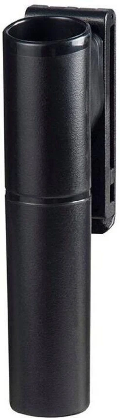 The Federal Scabbard rotates to 7 distinct positions on the duty belt and hold the baton in either a retracted or expanded mode, ready for rapid presentation while providing secure retention during dynamic confrontation. It will not rotate beyond horizontal or compromise the security of a baton. There is an adjustable internal clip that lets you set the amount of baton retention to your preference. This tough polymer scabbard features the exclusive snap-loc belt loop which attaches anywhere on the belt without having to thread or unthread other duty gear. The belt loop features an indexed slide track and bar that adjusts to fit all common duty belt and dress belt width or MOLLE Gear.