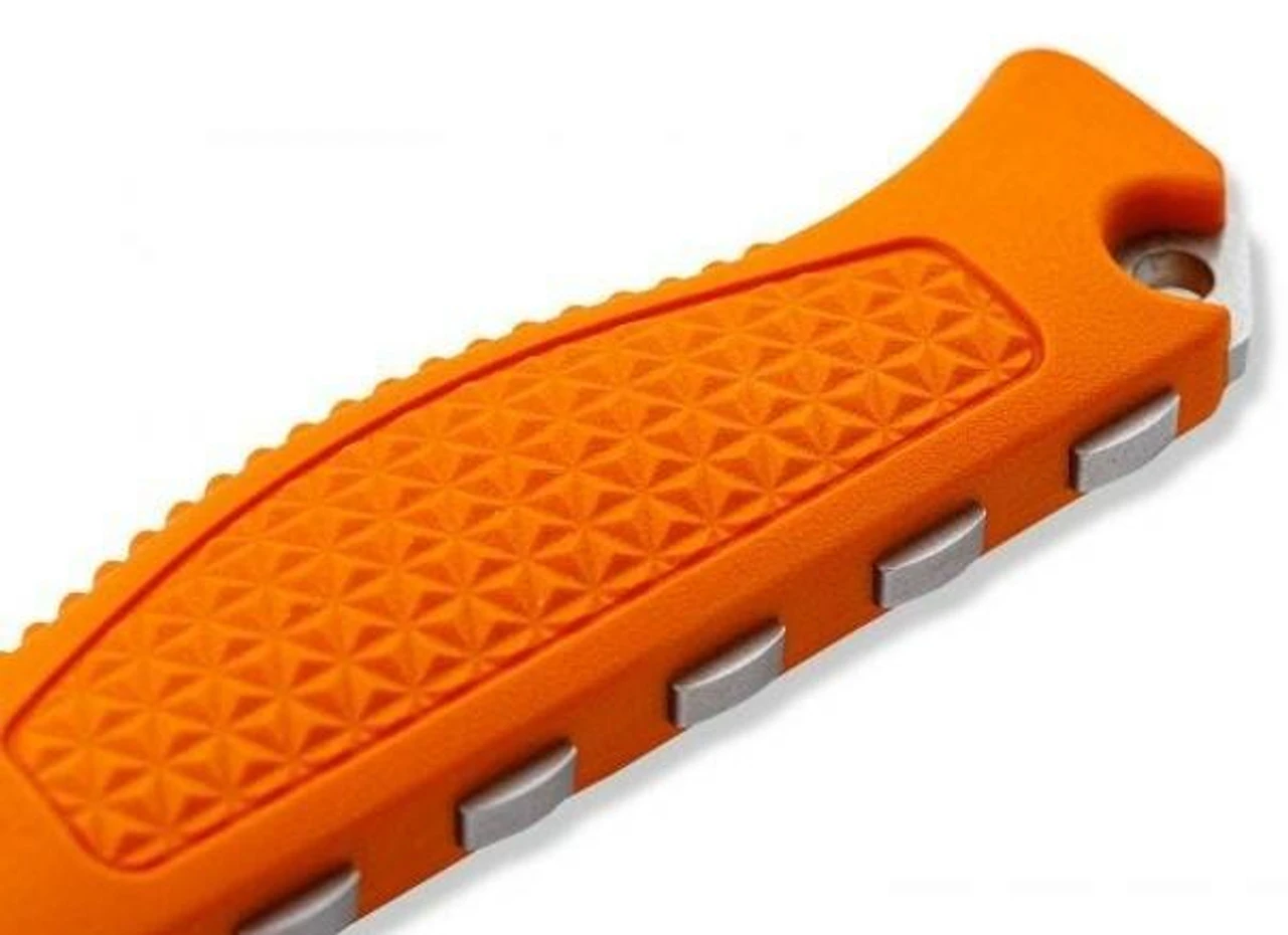 The Steep Country Hunter Knife is capable of performing throughout any season or species with its versatile fixed blade. This knife is easy to keep track of and provides ample grip in slippery conditions with its high visibility Santoprene handle and redesigned handle texture.