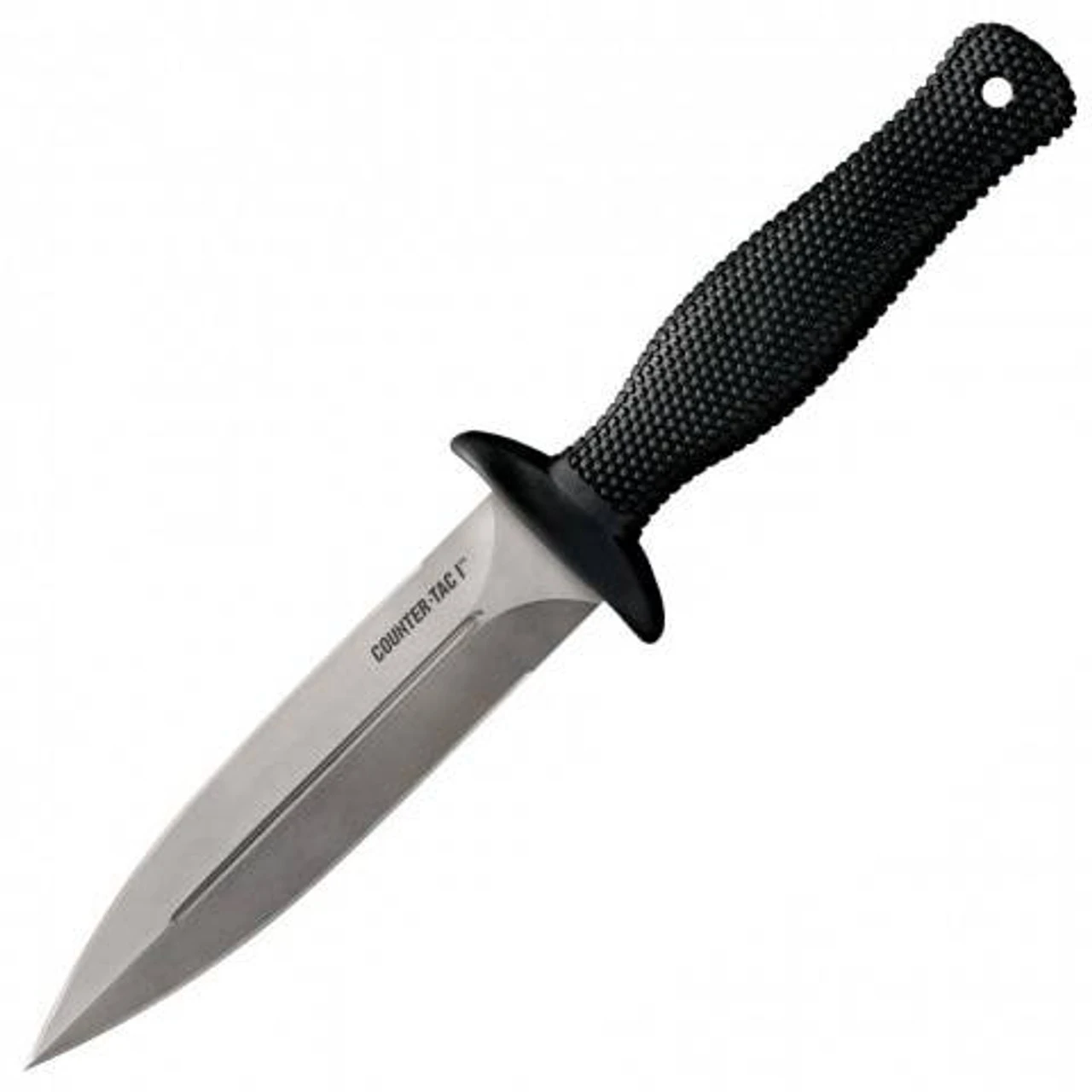The Cold Steel Counter TAC I AUS 8A Stainless Steel Knife was built to be a functional, hardworking full tang knife. Made with AUS 8A steel that’s vacuum heat treated and sub-zero quenched and an ergonomically designed Kray-Ex handle for maximum comfort and an adaptable grip. Featuring a deeply textured surface and double guard for a confident purchase and a Secure-Ex sheath with removable belt/boot clip and lashing slots for multiple carry options.