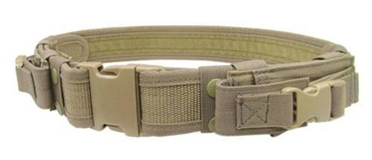 The Condor Tactical Belt is composed of high-quality nylon and fastens with a quick-release buckle. Two removable magazine pouches, which also feature quick-release buckles, provide extra storage. Rivets are suited to store holsters, a flashlight, an alice clip, or anything you need to keep accessible within reach. This belt provides a stable base for load bearing without adding any bulk to your gear. Though sturdy, this belt is lightweight and adjustable, so it is ergonomic and comfortable to wear all day.