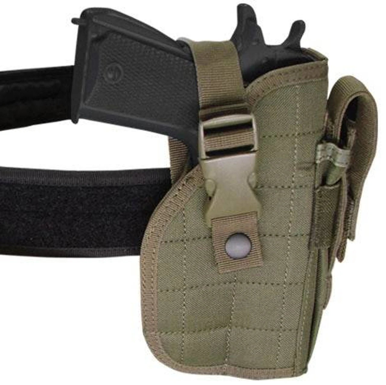- Non-Slip padded drop leg holster with extra magazine pouch.