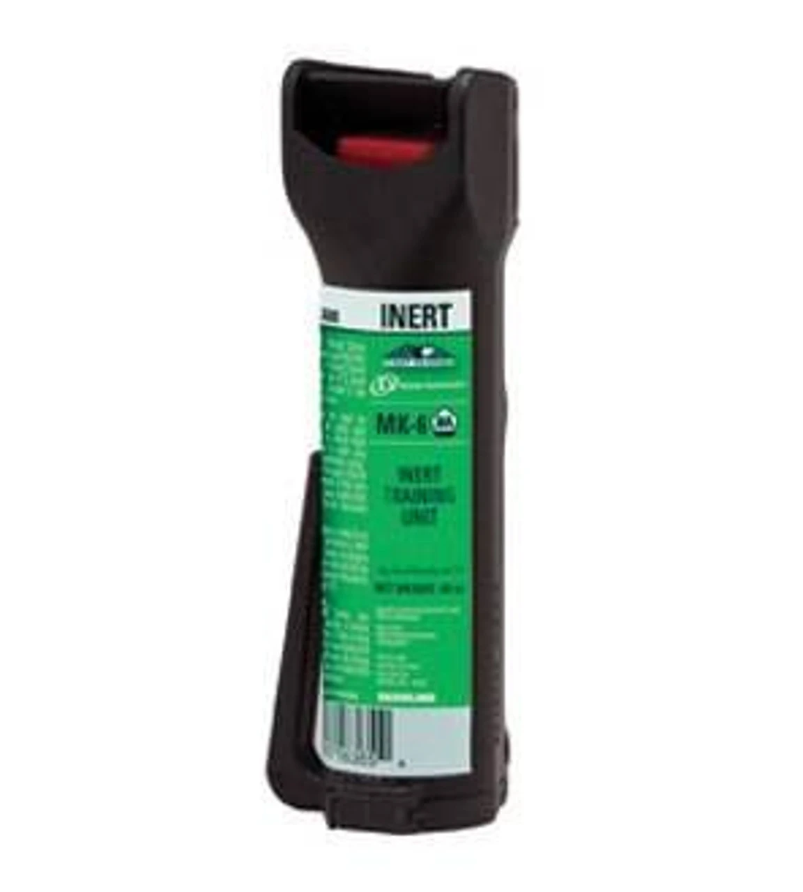 The Defense Technology Inert Training Unit MK-6 functions in duplicating the delivery system for aerosol sprays utilized for training purposes. The MK-6 will deliver 12-14 short bursts of OC at an effective range of 10-12 ft. This inert aerosol product utilizes a stream delivery method providing a target-specific, strong concentrated stream for greater standoff.