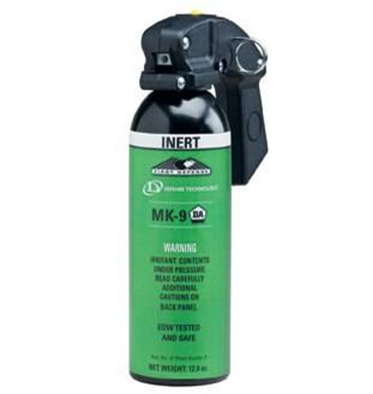 The Defense Technology Inert Training Unit MK-9 Stream iss a training aerosol spray and delivers 14 short bursts at an effective range of 18-20 ft. This inert aerosol product utilizes a stream delivery method providing a target-specific, strong concentrated stream for greater standoff.