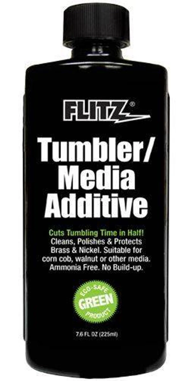 The Flitz Tumbler Media Additive is for tough metals that require tough cleaning. Supercharge your media’s scrubbing power with Tumbler Media Additive! Will not harm ANY METAL or primer and will not stress brass. No ammonia or buildup. Suitable for corn cob, walnut or other media. Cuts tumbling time in half and cleans, polishes, and protects brass and nickel. Flitz Tumbler Media Additive is an eco-safe product.