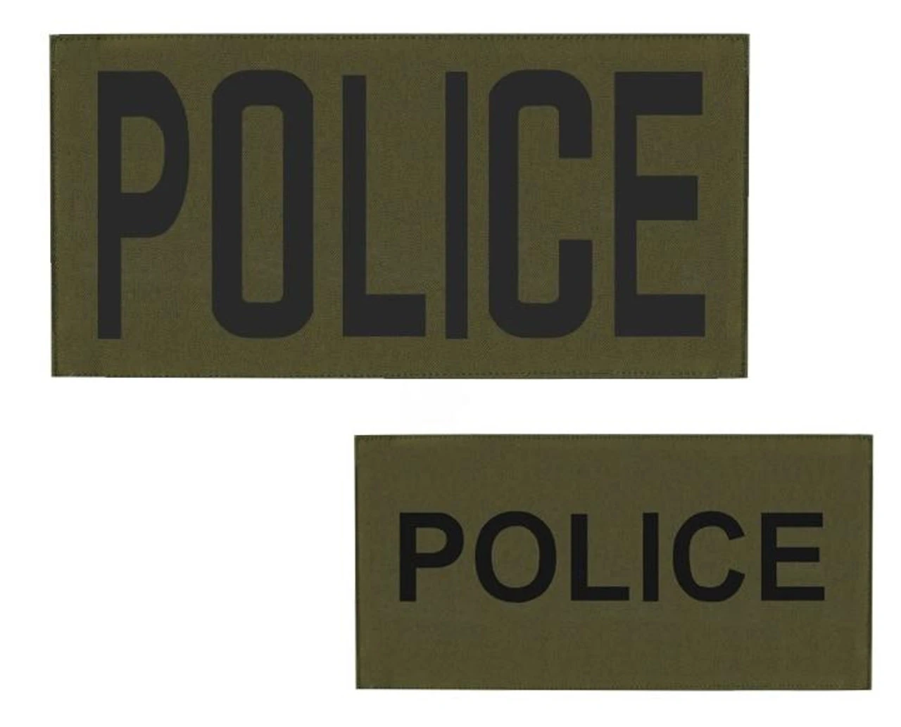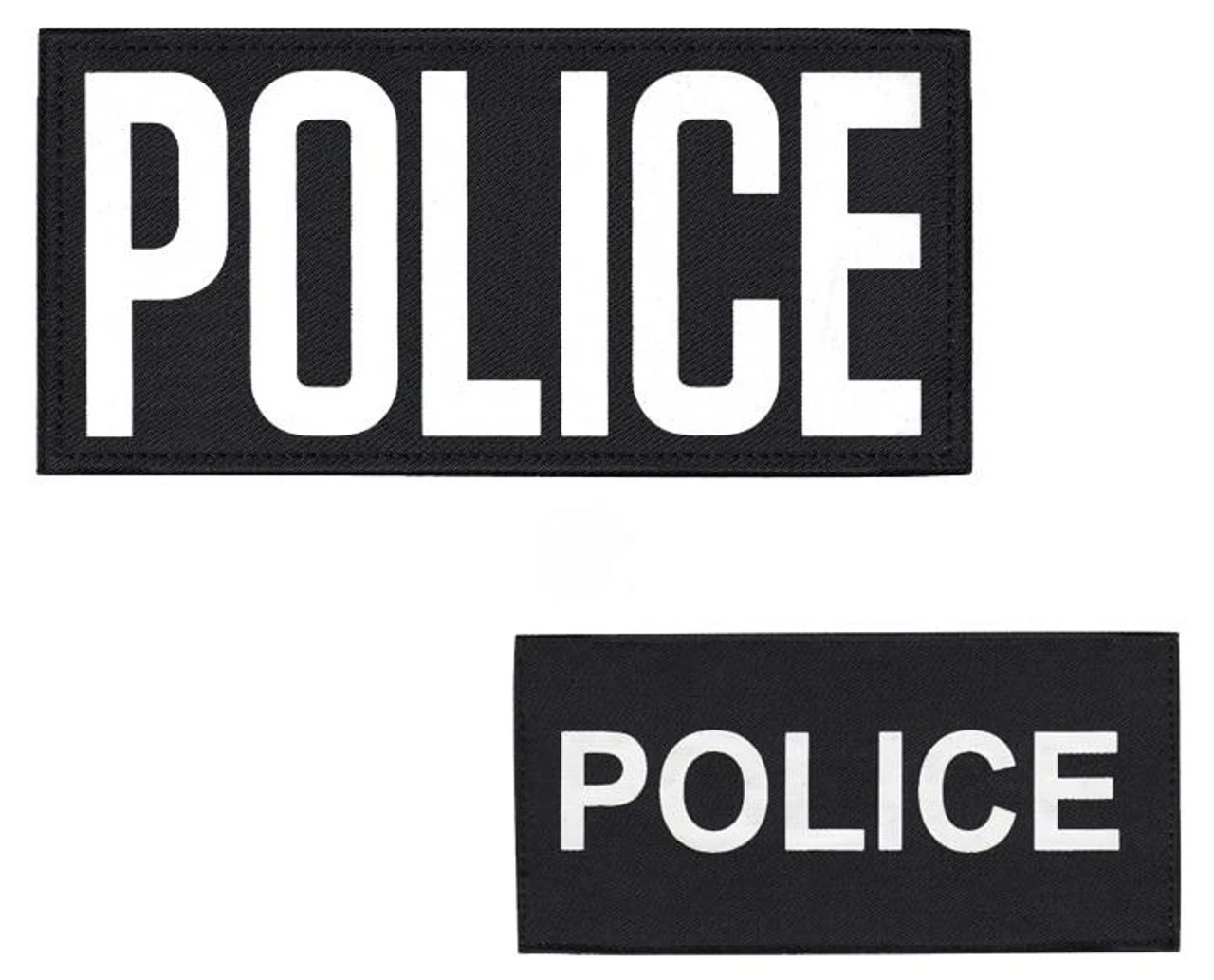 The Hero’s Pride Police Tactical Chest and Back Set is made with high quality materials. It features bold text on various colored backgrounds.