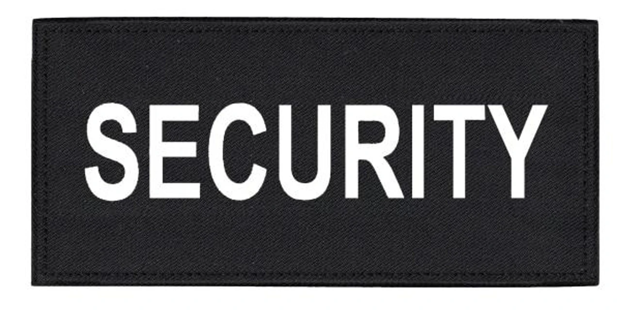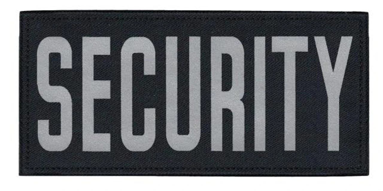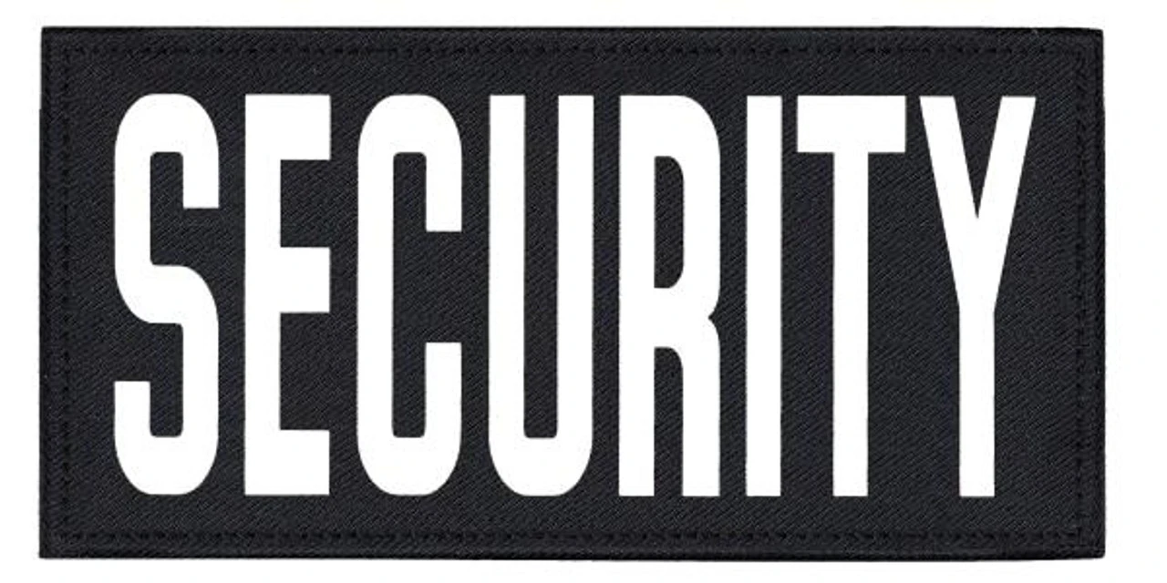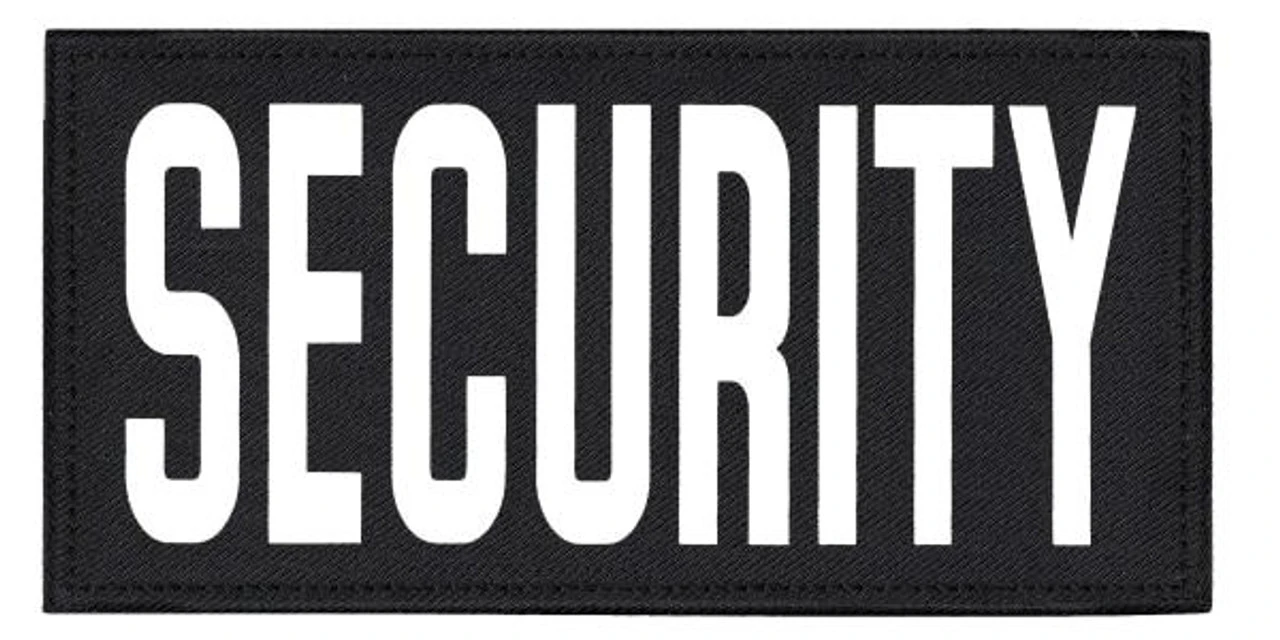 The Hero’s Pride Security Tactical Chest and Back Patch Set is made with high quality materials. It features bold text on various colored backgrounds.