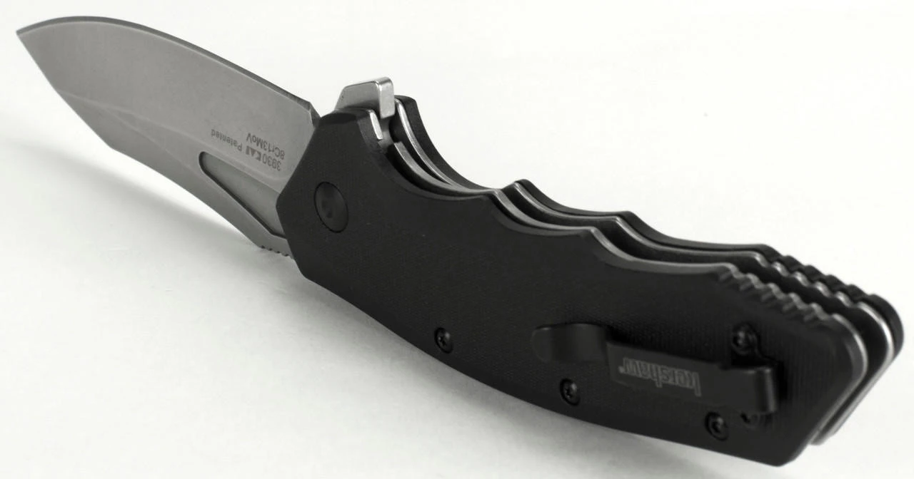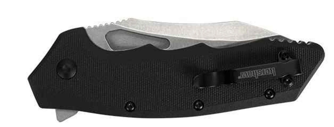 The Kershaw Flitch Flipper Knife 3930 features a modified drop-point blade, top swedge, and strong finger contouring.