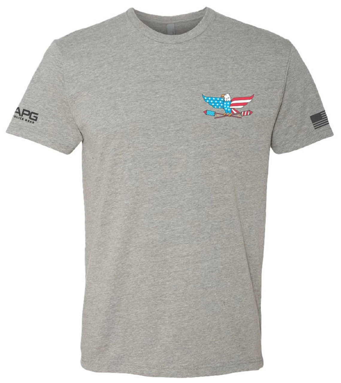 The LAPG Living Free T-Shirt features a large back decal and a small decal on the chest. This shirt is printed on a soft, breathable 60/40 Combed Ring-Spun Cotton/Polyester CVC Jersey fabric.