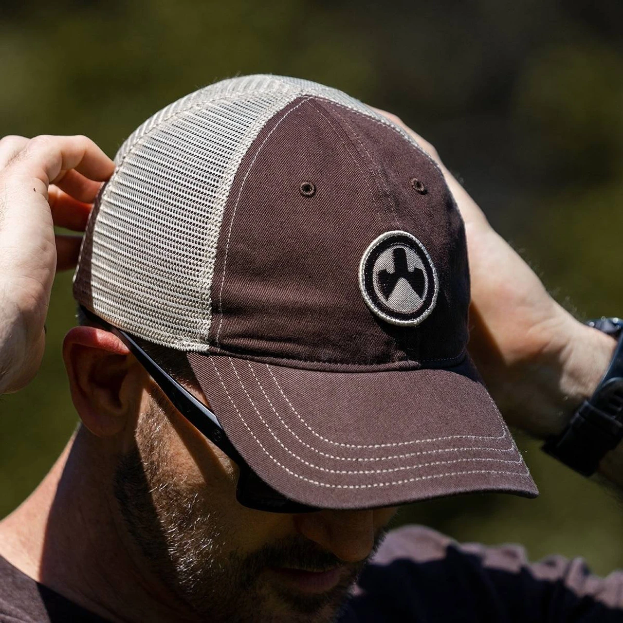 The Magpul Icon Patch Garment Washed Trucker hat is a relaxed fit, trucker-style hat with a six-panel design for comfort and durability. It’s an un-structured, low-crown design, so the brim rests comfortably on your forehead. There’s no button on the top of the hat, making it great for use with over the head hearing protection.