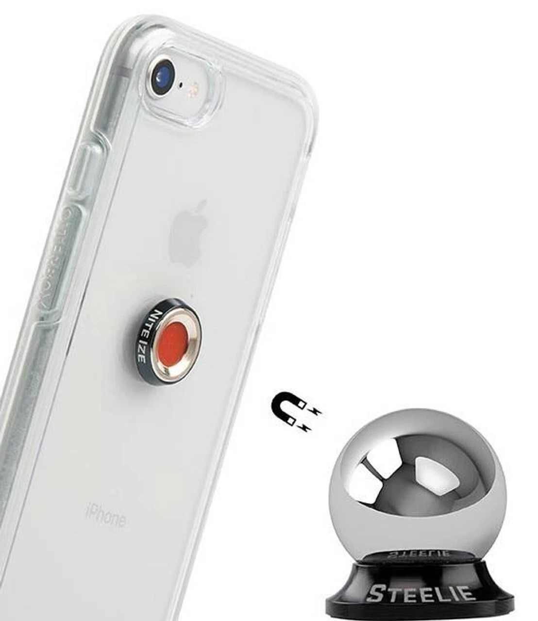 *The Steelie Magnetic Phone Socket contains a strong magnet. This magnet will NOT damage your mobile device; however, do not place it near magnetically sensitive objects such as credit cards, pacemakers, or computer hard drives. Nite Ize assumes no liability for damage to such products.