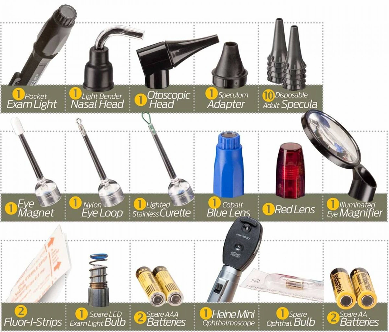 - Featuring the Heine Mini 3000 Ophthalmoscope (batteries included)