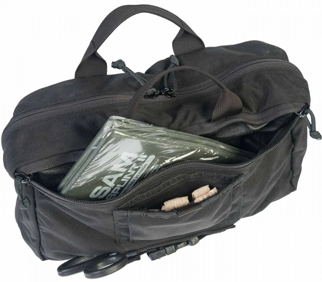 - Modular storage system comes organized with an array of medical products ranging from basic first aid to more intermediate trauma care