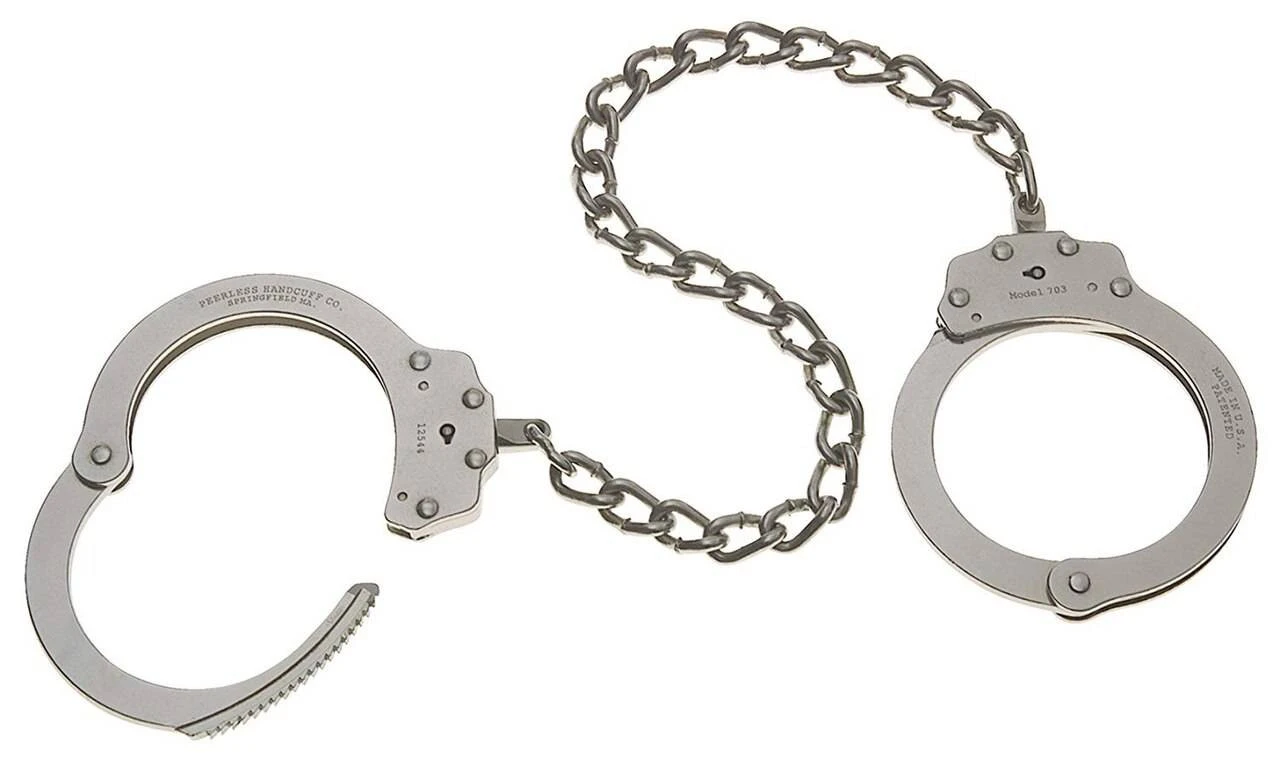 The Peerless Model 705 is designed specifically for larger individuals. It has a 3.25 inch opening with a maximum inside perimeter 20% larger then the Model 703 Leg Iron. The Model 705 is made to the same standards as other Peerless products. It features all steel construction, spun rivets and a rust resistant nickel finish. The 15″ chain effectively limits range of motion.