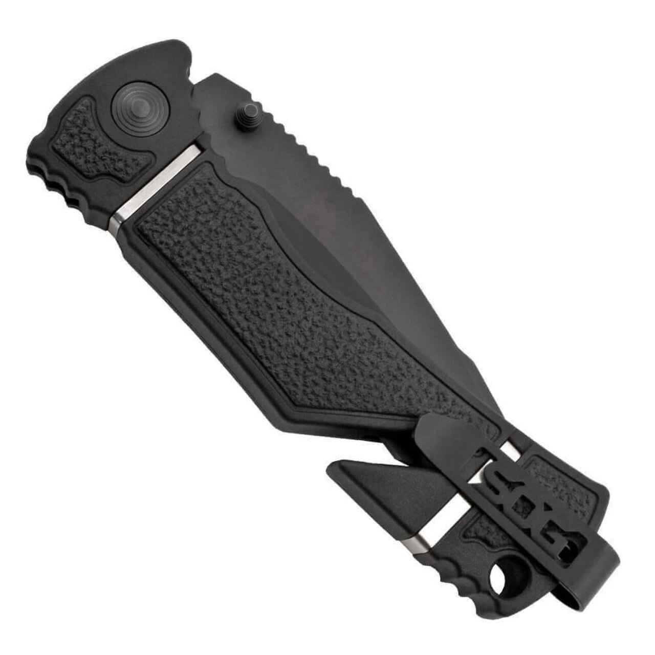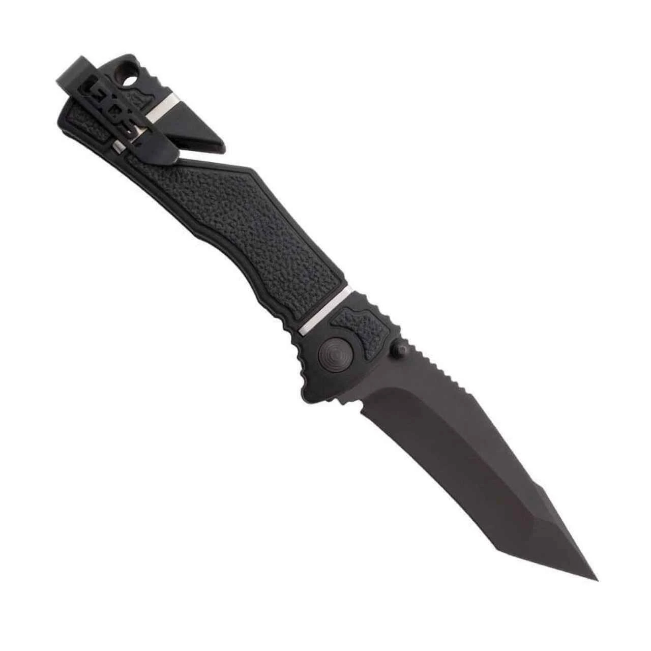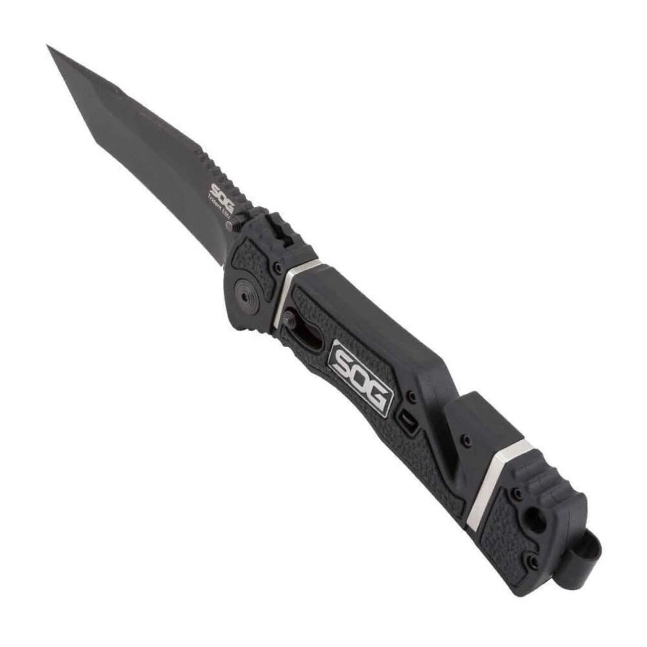 The SOG Trident Elite Straight Edge Tanto Folding Knife is designed to tackle any emergency situation, the Trident Elite is ready to go at a moment’s notice with its assisted opening mechanism, slot cutter, and glass breaker.The Trident Elite features SOG’s patented Assisted Technology for quick one-handed opening. The slot cutter built into the handle can cut thin rope, belts, or webbing without opening the blade. The front of the handle has a built-in glass breaker for any situation. The Trident Elite comes with a 3.7-inch blade made of reliable AUS-8 stainless steel and a durable glass-reinforced nylon handle with textured rubber inserts to improve grip.