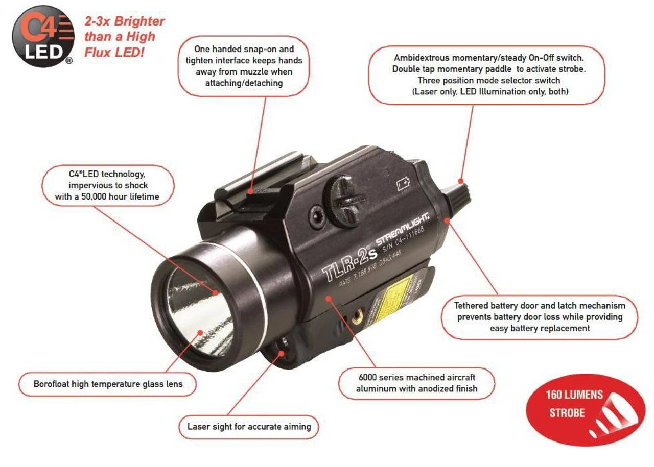 Still the same dependable Streamlight TLR-2, but now packs a brighter punch and features a laser, giving you the decisive advantage in a potentially lethal situation.