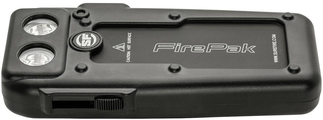 The Surefire FirePak Emergency Illumination & Power Backup is an ultra-powerful light that’s useful as a video light source, a powerful handheld light, or a portable charger for electronics. Two high-performance LED emitters project a blended beam that fits a 16.9 HD video frame and throws light up to 50 feet. This FirePack can securely attache to popular smartphone models via specially developed SureFire phone cases (sold separately), and its lighting output can be remotely adjusted by activating the free Bluetooth app. Whether you need to light a scene, be seen, or add a little extra spark to another device, the FirePak is ready, willing and supremely able.