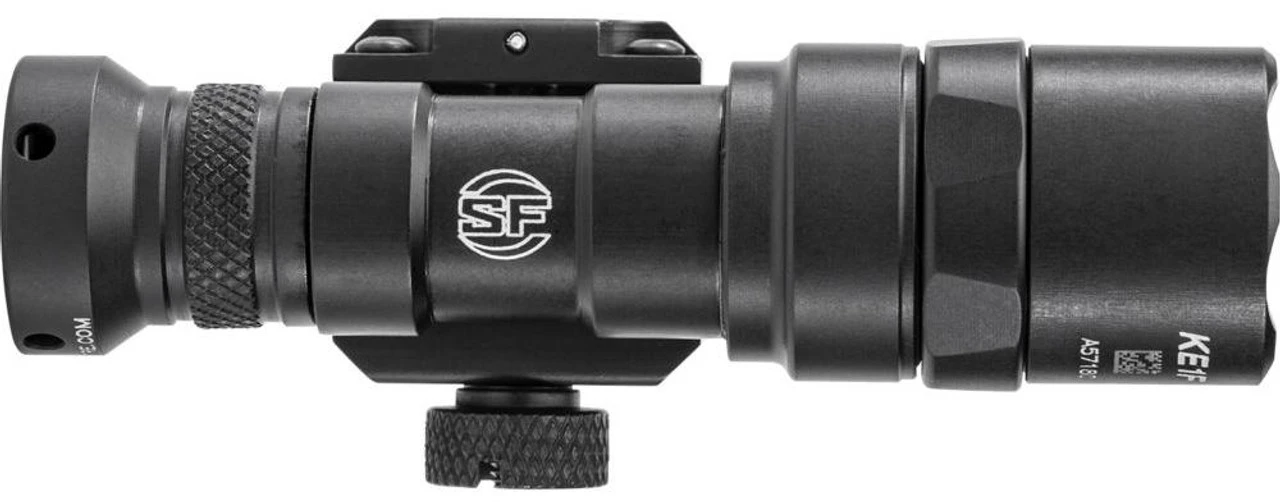 The Surefire M300C 500 Lumen Scout Light is powerful, lightweight, and powered by just a single 123A lithium battery—that features a nearly indestructible LED capable of generating 500 lumens of light focused by a TIR lens into a high-intensity beam with exceptional reach for close- to mid-range operations. The rugged M300 easily and securely attaches to MIL-STD-1913 Picatinny rails via its integral thumbscrew clamp and is activated by clicking its pushbutton tailcap switch or pressing its pressure-activated tape switch, included on appropriate models. Machined from lightweight aerospace aluminum with a Mil-Spec hard anodized finish and O-ring sealed to keep out the elements, the ultra-compact M300 will withstand the rigors of combat without weighing down your weapon.