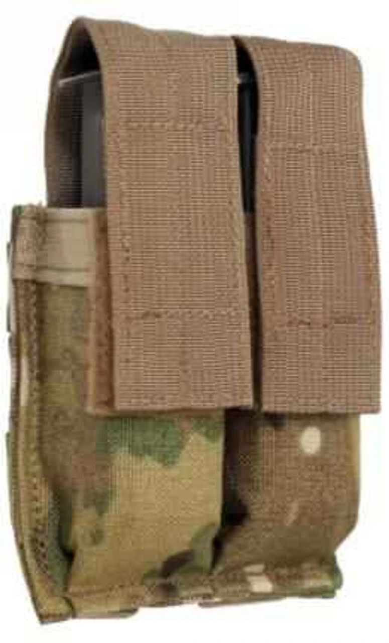 Tactical Tailor Double Pistol Mag Pouch is designed to fit almost any size pistol mag. Features adjustable and removable hook and loop flaps and each pouch contains an injection molded retention clip to securely hold pistol mags until need them. Attaches to any MOLLE/PALS style gear and most standard belts with two included short MALICE CLIPS. Constructed from 1000 Denier Cordura Nylon for maximum durability.