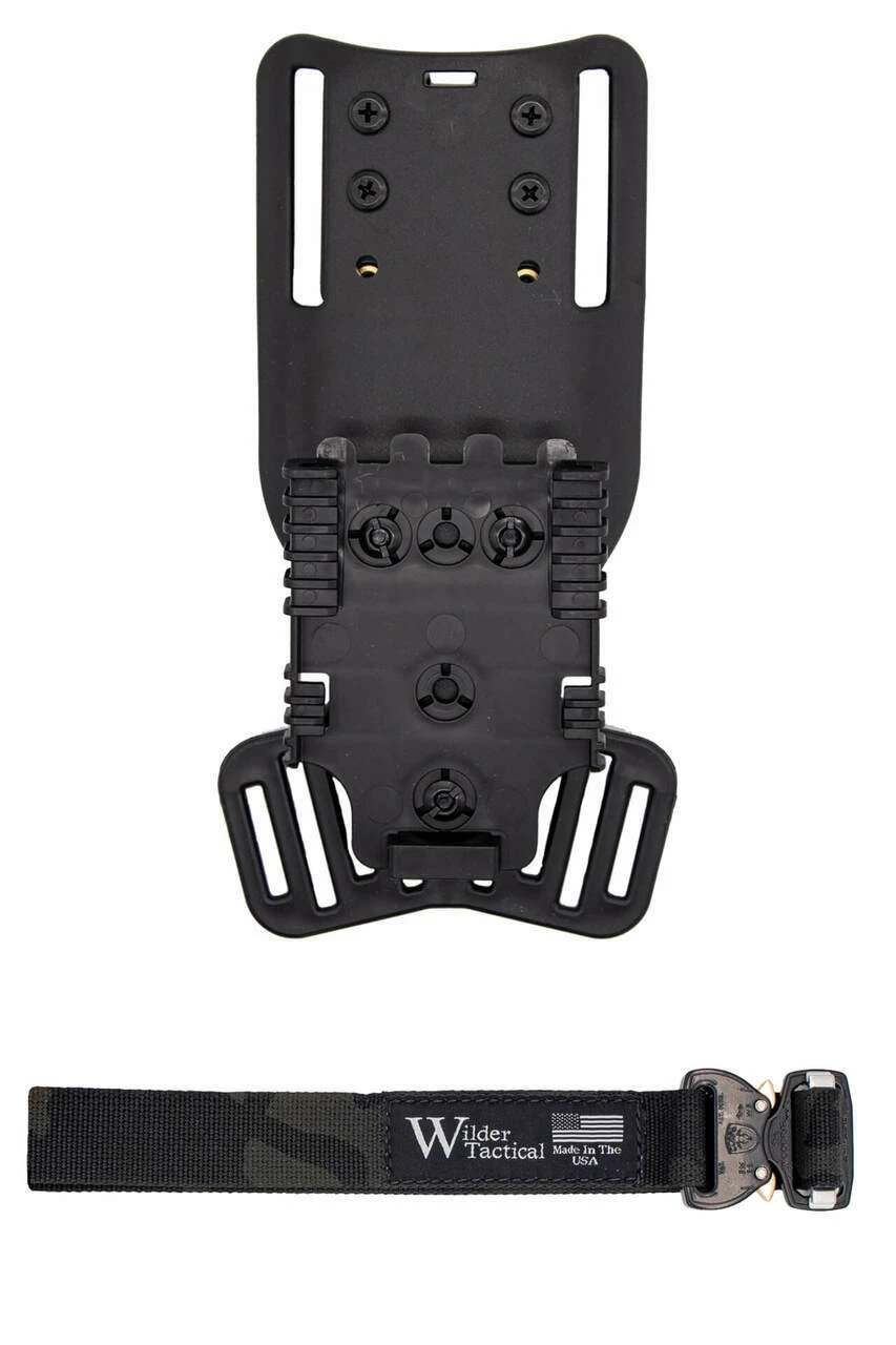 The Wilder Tactical Modified UBL Low Ride Leg Strap with QLS Receiver comes preassembled and all the operator needs to do is attach their holster.